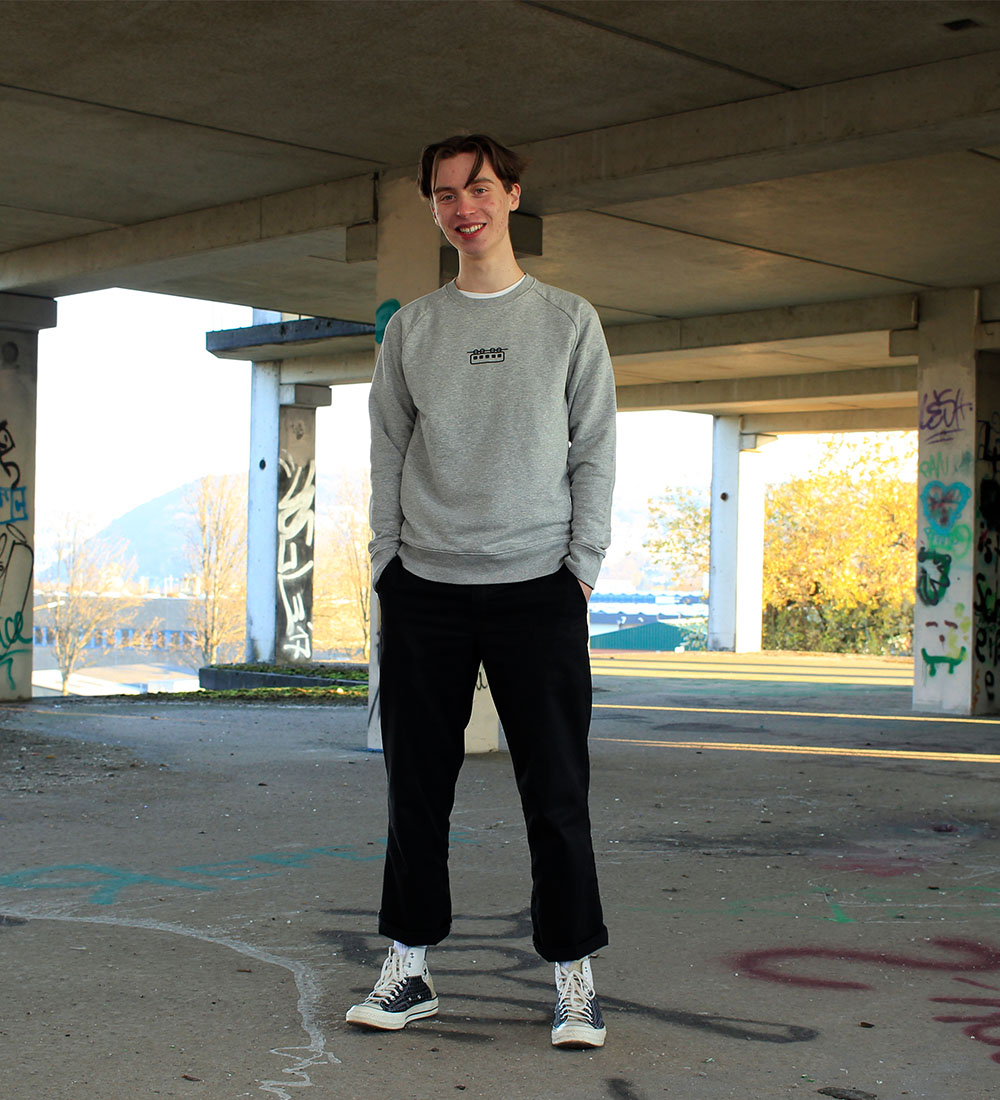 In jeder Gelegenheit das Richtige an. Das geht mit unserem Sweatshirt. Auf der Party von Bekannten, im Büro, auf dem Sofa, im Stau, in der Schwebebahn, im Unterricht, auf dem Fahrrad, im Urlaub, beim Musizieren, auf dem Mond oder grade in diesem Moment, alles die richtigen Situationen, dieses Sweatshirt zu tragen.